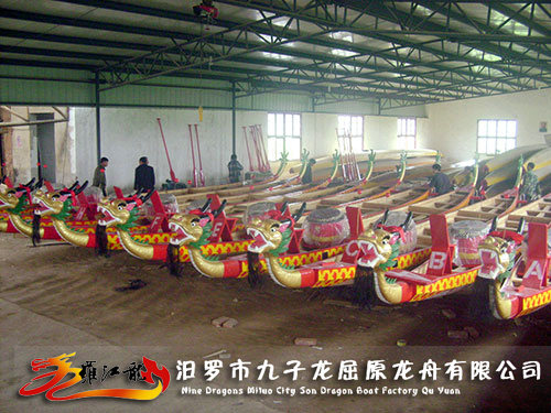 汨羅市九子龍屈原龍舟有限公司2013年成立于湘楚文化屈原圣地-----汨羅江畔。它既是龍舟競(jìng)渡的源頭,又是祖輩制造龍舟的基地。廠長(zhǎng)許桂生從事龍舟制作已有30余年歷史,為繼承祖?zhèn)髦圃忑堉鄹挥幸欢ǖ慕?jīng)驗(yàn)。我廠是全國(guó)新型混合龍舟生產(chǎn)基地;中國(guó)龍舟協(xié)會(huì)器材委員會(huì)委員;通過(guò)了ISO9001國(guó)際質(zhì)量體系認(rèn)證。本廠其獨(dú)特的制作工藝成為了非物質(zhì)文化遺產(chǎn)傳承廠家。自一九八九年開始生產(chǎn)國(guó)際標(biāo)準(zhǔn)龍舟以來(lái),岳陽(yáng)市歷屆賽事龍舟均由本廠員工生產(chǎn),湖南省岳陽(yáng)九子龍龍舟公司生產(chǎn)的龍舟都是現(xiàn)任廠長(zhǎng)負(fù)責(zé)技術(shù)和組織工人的,其產(chǎn)品曾銷往北京第六屆民運(yùn)會(huì)、上海三龍邀請(qǐng)賽、上海第四屆錦標(biāo)賽、吉林冬運(yùn)會(huì)。現(xiàn)在本廠融入沿海玻璃鋼技術(shù),保留了傳統(tǒng),提高了產(chǎn)品質(zhì)量,現(xiàn)生產(chǎn)各種型號(hào)國(guó)際標(biāo)準(zhǔn)龍舟及各種民間龍舟...